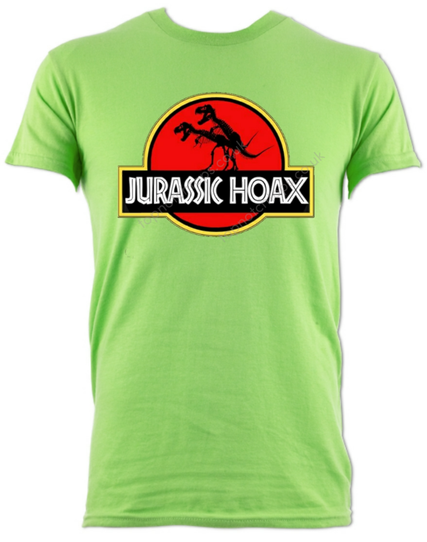 Lime green dinosaur t-shirt with printed dinosaur logo design. Round neck, great quality. Washes well. For men and women.