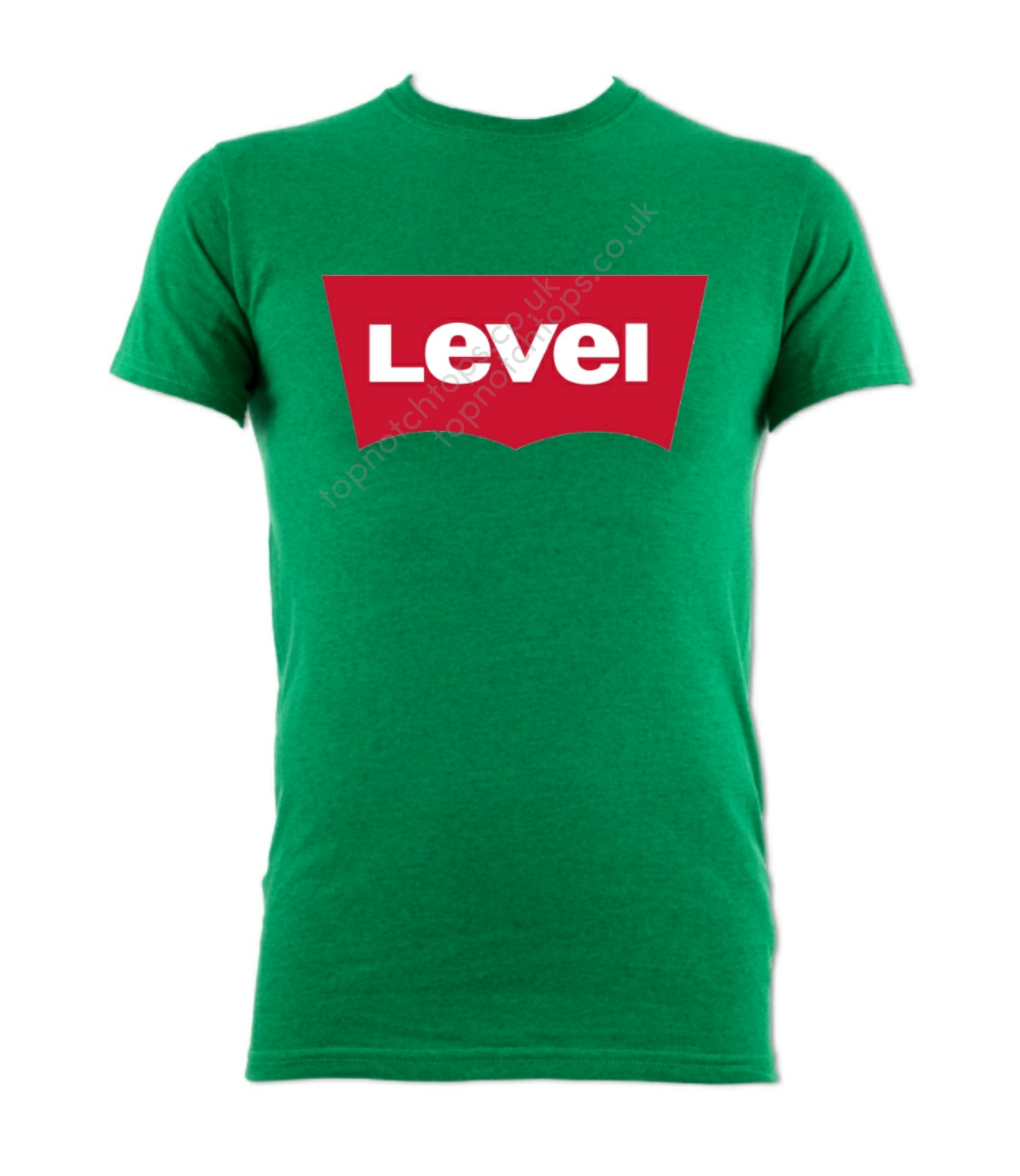 Green Level logo t-shirt with printed Level logo design. Round neck, great quality. Washes well. For men and women.