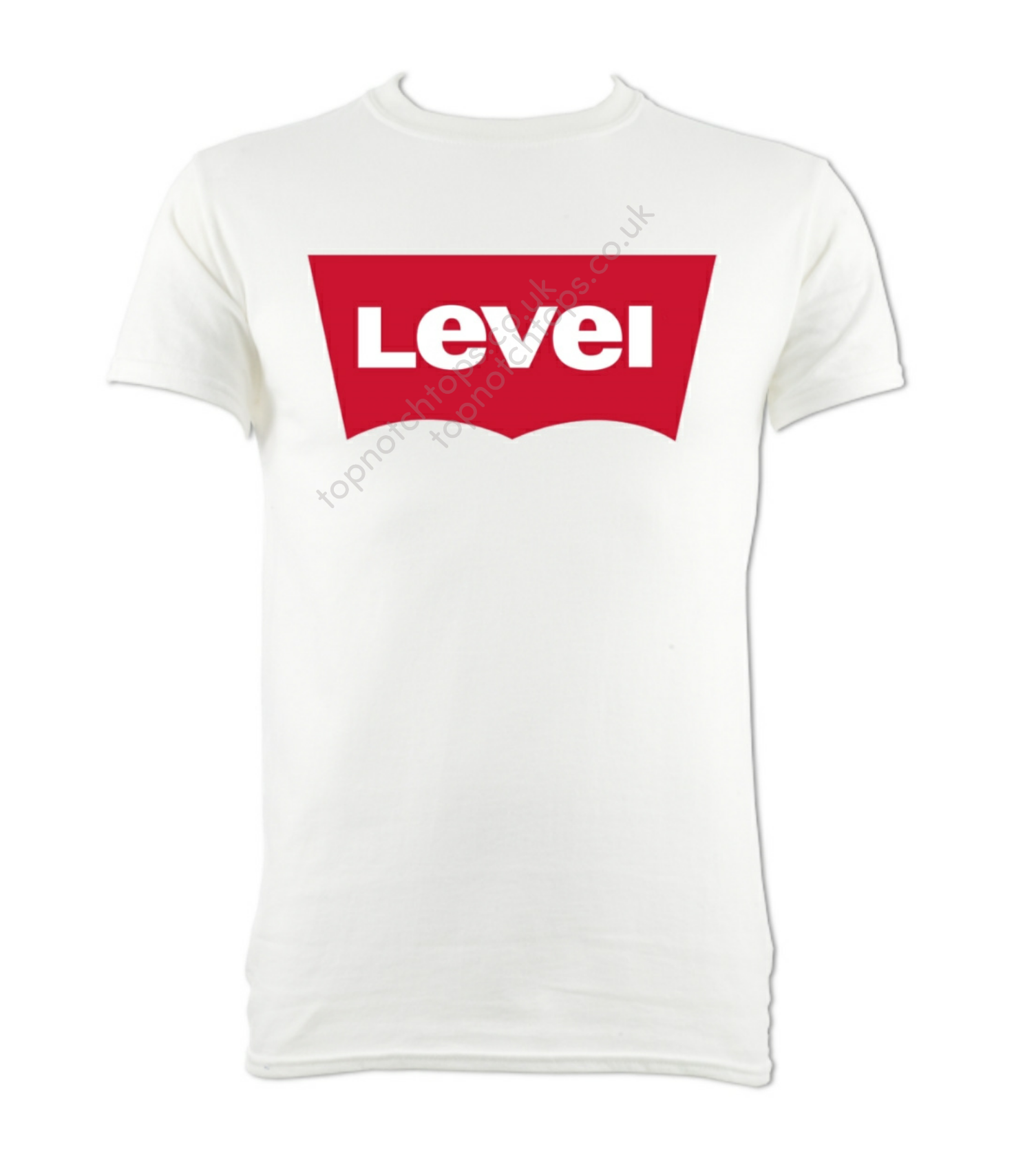 White Level logo t-shirt with printed Level logo design. Round neck, great quality. Washes well. For men and women.